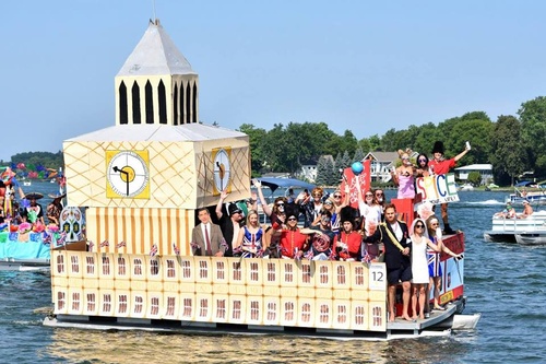 2026 marks the 65th annual celebration of Raft-O-Rama. The boat parade starts at 10:30am at the west end of the lake and travels in a counter-clockwise direction around the lake. Once the parade is done and the judging has been completed, the party begins at Eagle Point with live music.